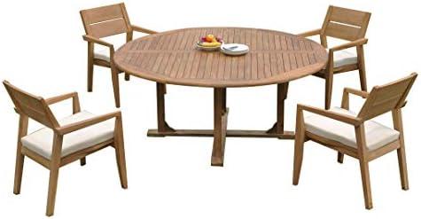 Teak Dining Furniture Set with Round Table and Stacking Arm Chairs