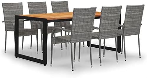 Create a compelling and cohesive aesthetic in your outdoor space with this chic dining arrangement. Supported by a sturdy powder-coated steel frame, this set offers stability and longevity. The table features a solid acacia wood top, renowned for its durability, paired with an oil finish. This tropical hardwood enhances the overall aesthetic while ensuring weather resistance. The six lightweight chairs are crafted with PE rattan, making them not only attractive but also easy to clean and maintain. Their stackable design allows for space-saving when not in use.