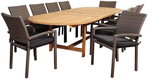 Elegant 11-Piece Teak and Wicker Dining Set for Outdoor Gatherings