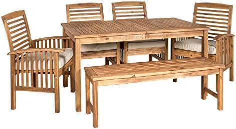 Walker Edison Rendezvous Modern 6 Piece Solid Acacia Wood Outdoor Dining Set, Set of 6, Brown
