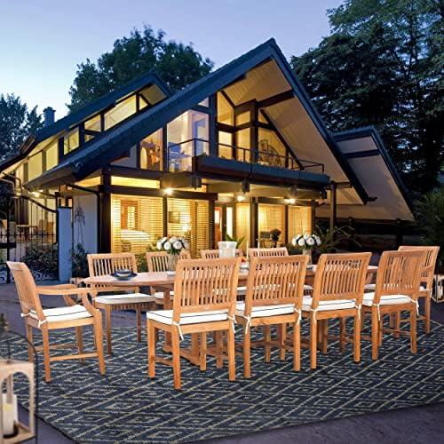 This exquisite dining set features an oval extension table that easily transforms from 71 inches to 94 inches, accommodating both intimate gatherings and larger parties with ease. Each piece is crafted from Grade-A plantation-grown teak wood, ensuring durability and resistance to outdoor elements. The butterfly leaf mechanism allows for hassle-free storage, while the hand-rubbed wax finish adds a luxurious touch to the rustic charm of the wood. The set includes two arm chairs and six side chairs, all designed to provide comfort and style, making it perfect for alfresco dining and entertaining.