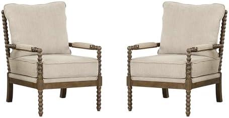 Set of Two Stylish Spindle Accent Chairs with Comfy Linen Upholstery