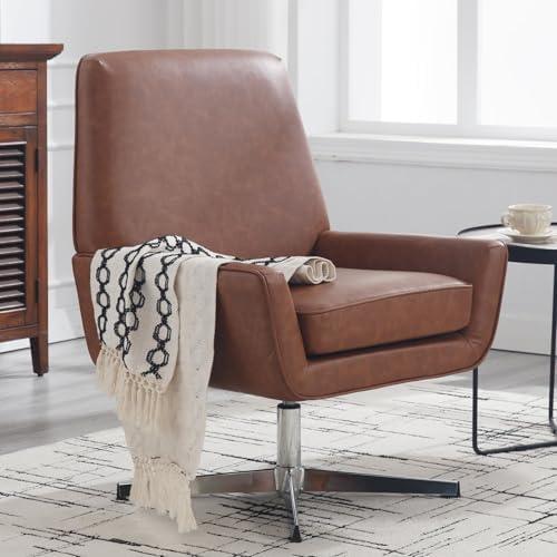 This accent chair combines contemporary style with comfort, featuring a soft faux leather upholstery and an oversized cushioned seat that caters to your lounging needs. Its ergonomic armrest design provides excellent support, making it perfect for reading or just relaxing. With a 360-degree swivel base, this chair allows for effortless movement, ensuring you can easily engage in various activities around your space without hassle. The X-shaped metal legs not only enhance its stability but also bring a modern touch to your decor, making it suitable for your living room, bedroom, or home office.