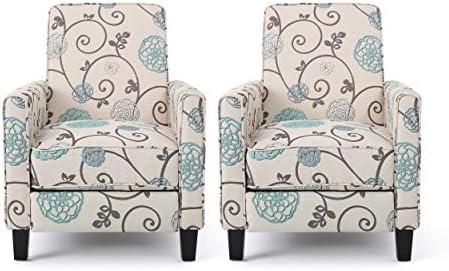 This exquisite pair of recliners delivers exceptional comfort without overwhelming your limited living space. The low-profile design, combined with piped edges and sleek tapered legs, introduces a modern touch while maintaining an airy ambiance. Made from 100% polyester fabric and available in a charming light beige adorned with blue floral patterns, these recliners are ideal for adding a splash of style to any room, from cozy apartments to smaller homes. With dimensions of 27 inches wide and 34.75 inches deep when closed, they easily fit without feeling cramped, and the full recline length of 60.5 inches offers ample room for relaxation.