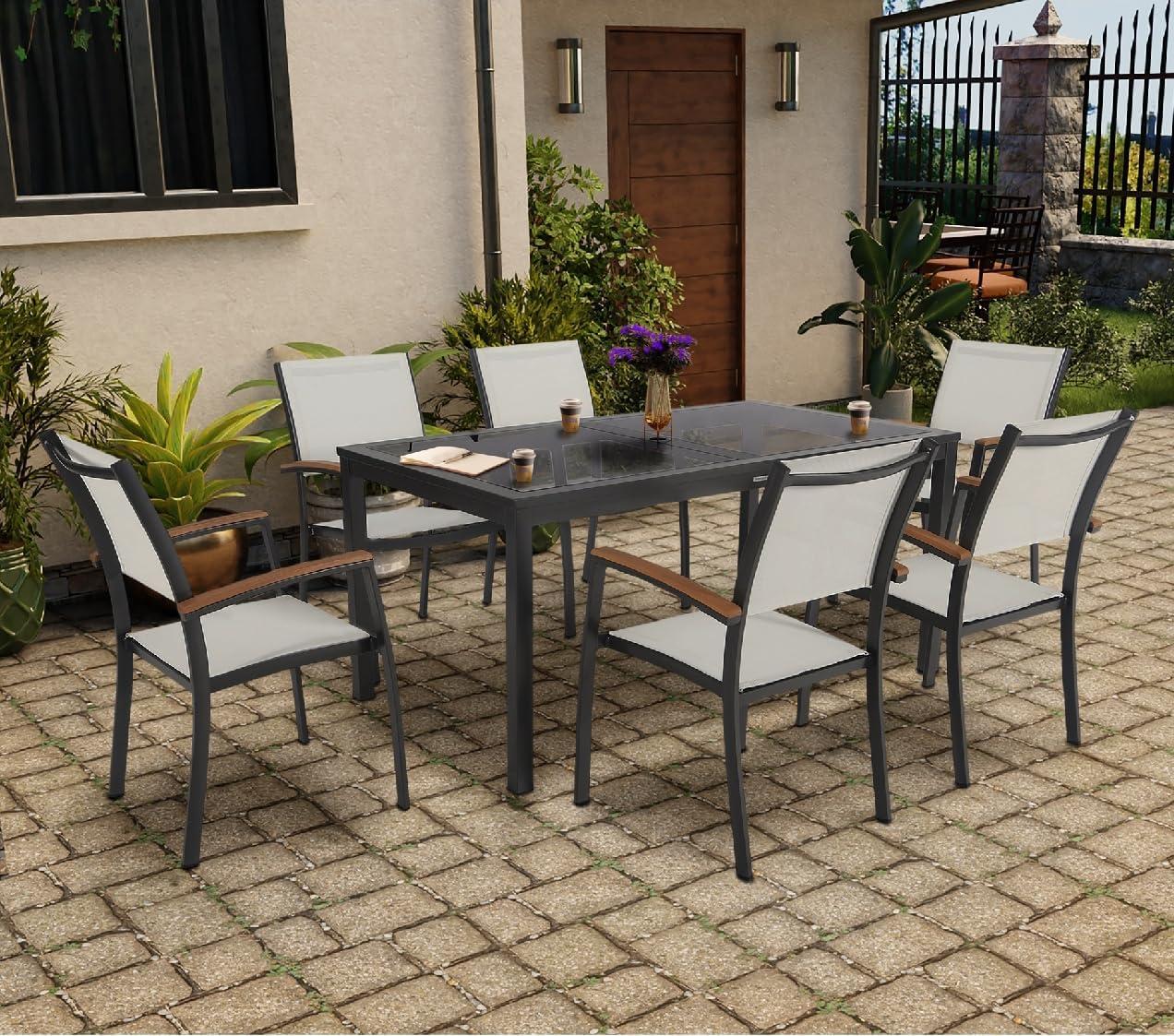 Stylish 7-Piece Outdoor Dining Set with Umbrella Hole