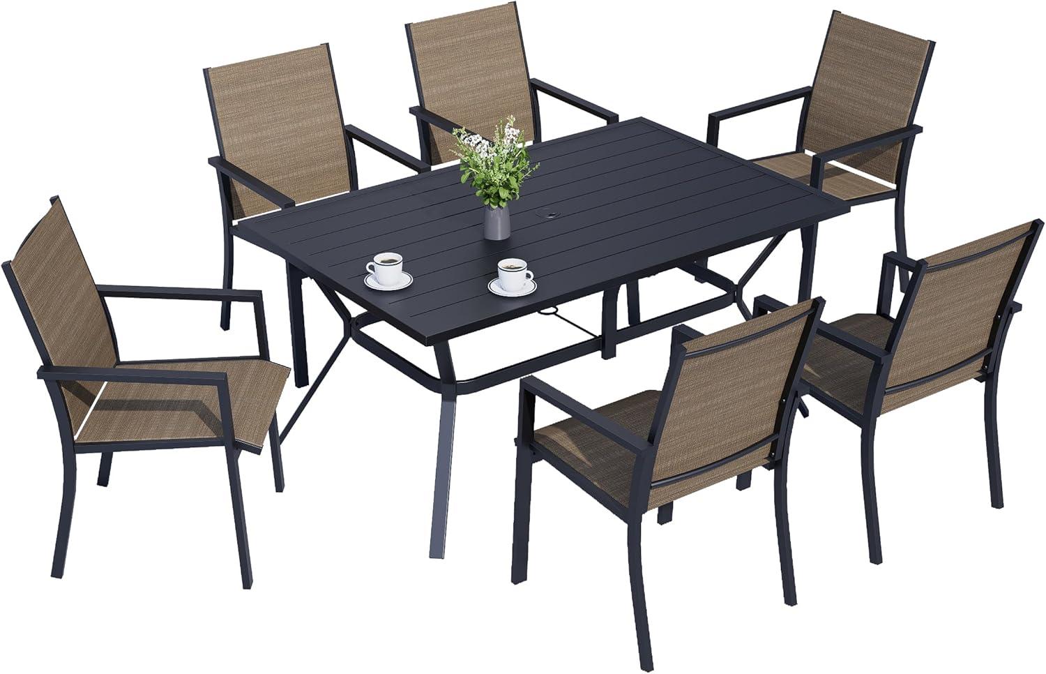 Stylish 7-Piece Patio Dining Set with Textilene Chairs and Rectangular Table