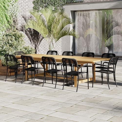 This sophisticated 11-piece outdoor dining ensemble is expertly crafted from high-quality teak wood, ensuring a blend of durability and style for any patio. Featuring a double-extendable oval table, it comfortably accommodates up to 10 guests, making it perfect for entertaining friends and family. The set includes 10 stacking armchairs, which are not only stylish but also space-saving. An included Amazonia Wood Protector enhances the set’s longevity by guarding against air pollution, salt air, and mildew, elevating its performance even in challenging environments.