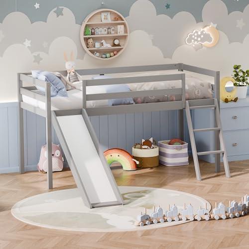 Twin Loft Bed with Fun Slide, Safe Design, and Ample Storage