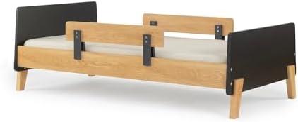 This twin bed frame for children is designed with practicality and aesthetics in mind, featuring removable safety guardrails and a low-profile structure that facilitates a smooth transition from crib to bed. Built from durable rubberwood with a sturdy mattress base, the solid construction can support children weighing up to 95 pounds. Its playful lines and modern style make it a suitable fit for both boys and girls, ensuring it can grow with your child from toddlerhood to their big-kid years.