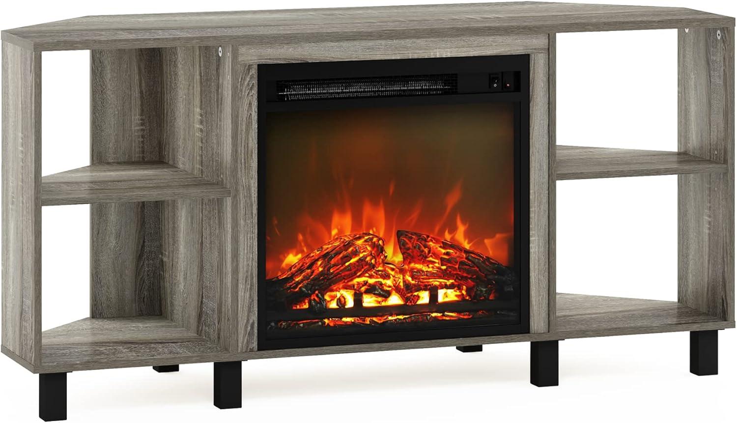 bringing warmth and style to our living room, the furinno Jensen Corner Fireplace TV Stand has quickly become a focal point in our entertainment space. Designed to fit snugly into a corner, this unit not only supports TVs up to 55 inches but also features an electric fireplace that adds a cozy glow and gentle heat to the room. With four open compartments, it offers practical storage for media devices, décor, and more, all wrapped in a sleek French Oak Gray finish that complements various interior styles. In this review, we’ll share our experience with its assembly, functionality, and overall presence in our home.