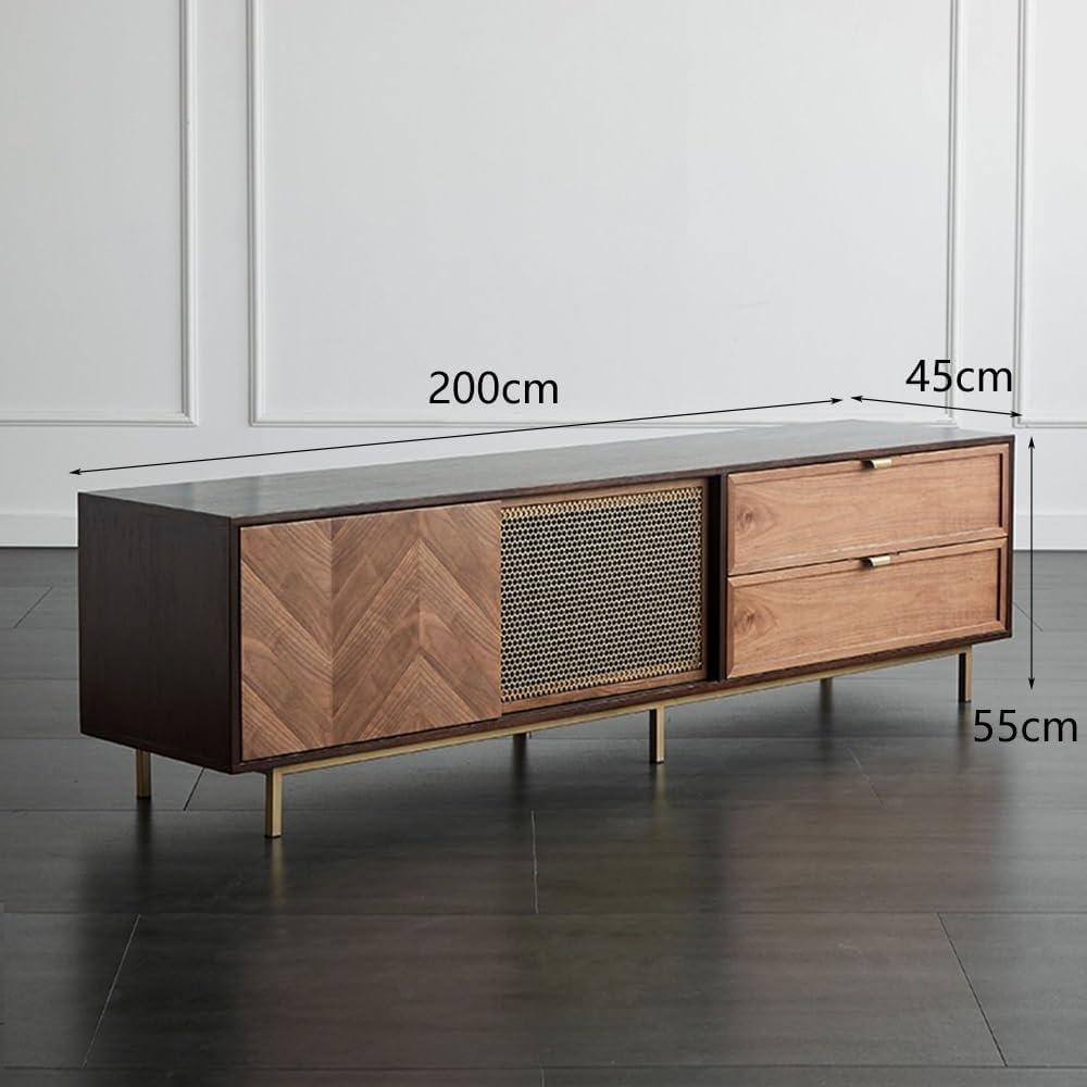 This TV stand catches our eye immediately with its blend of solid wood craftsmanship and modern-retro styling, which brings warmth and sophistication to any space. Its expansive countertop, measuring 200cm in length, provides ample room not only for your television but also for decorative accents like vases or framed photos, adding a personalized touch to your living area. The clean lines and subtle retro details complement a variety of interiors, from contemporary living rooms to cozy lounges, making it a versatile centerpiece for homes, hotels, or office entertainment spaces.