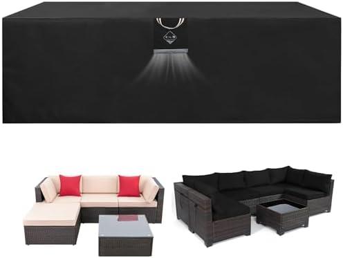 Constructed from upgraded 600D strong tear-resistant oxford fabric, these covers are highly durable and effective in protecting your outdoor furniture. Featuring a triple waterproof design, they include a waterproof layer on the outside, multiple PU coatings on the inside, and quality sealing tape at the seams, ensuring that your furniture remains dry even during heavy rain. The UV protection is particularly noteworthy, as the fabric blocks 98% of harmful rays, effectively preventing fading and discoloration, thus extending the life of your patio sets. Additionally, these covers are designed to be windproof, utilizing adjustable drawcords and windproof buckles to ensure stability in adverse weather conditions.