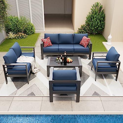 Modern Outdoor Patio Furniture Set in Stylish Dark Grey & Blue