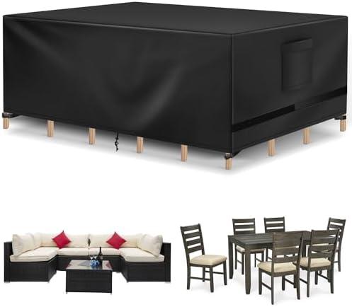 Pros of this cover set include its waterproof and puncture-resistant material that offers substantial protection for patio furniture, and the tightening drawstrings which help maintain coverage during windy conditions. On the flip side, potential cons may consist of challenges related to finding the perfect fit for uniquely shaped furniture or the possibility of wear and tear over extended use in harsh climates. Nonetheless, these covers stand out in keeping your outdoor seating looking new despite the elements.