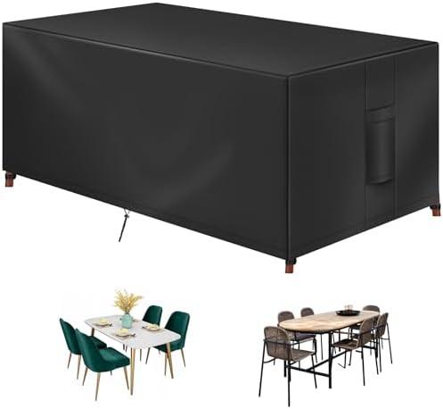 However, like any product, it has its limitations. Some users may find that while it fits various furniture sizes, it might not cover unusually shaped pieces effectively. The lightweight nature of the fabric, while ensuring ease of handling, could also be a concern for those living in areas prone to severe weather. It’s also recommended to elevate the center of the cover to prevent water pooling, which may not be ideal for everyone. it’s a practical option for those looking to protect their outdoor dining tables and chairs from dust, snow, and harsh UV rays.