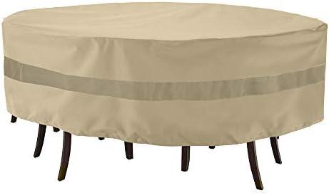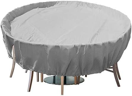 However, there are some considerations to keep in mind. While the cover is designed to resist tearing and ripping, its heavyweight construction might be cumbersome to handle for some users. Additionally, measurement accuracy is essential, as it fits only large round tables up to 82″ in diameter with 4-6 accompanying chairs. this cover combines functionality with style, making it a valuable investment for protecting outdoor furnishings.
