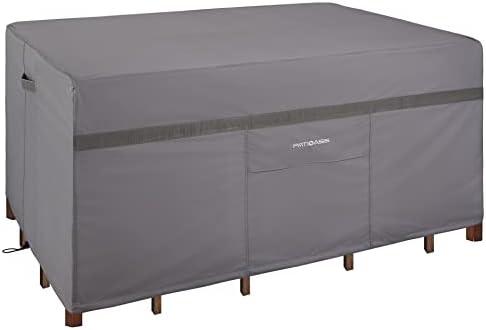 This high-quality cover is designed to accommodate rectangular tables along with 7 to 9 standard chairs, ensuring your patio setup is fully protected from the elements. Crafted from heavy-duty 600D oxford fabric, it effectively shields your furniture from dust, UV rays, and moisture, thus promoting longevity. Its waterproof exterior keeps your furniture looking fresh and new, regardless of the weather conditions. Additionally, the stylish gray tone not only offers a sleek aesthetic but also means that your outdoor space remains inviting even when covered. The versatility of this cover allows for seamless seasonal transitions, making it practical for both summer and winter use.