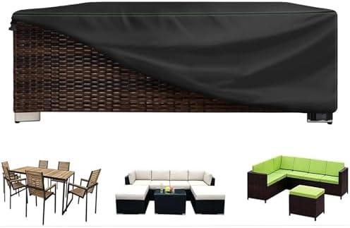 This cover is designed to keep your outdoor furniture in pristine condition, extending its lifespan significantly. Made from high-density 420D Oxford cloth, it features exceptional waterproof, snow-proof, dust-proof, and UV-resistant properties, ensuring your patio furniture is shielded from harsh weather conditions. The added black PVC lining enhances its durability, while the double-stitched seams and windproof straps secure the cover tightly, preventing it from blowing away even during strong winds. The cover is versatile enough to fit various types of furniture, making it an ideal choice for almost any outdoor setting.