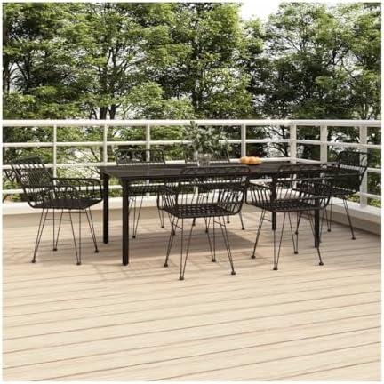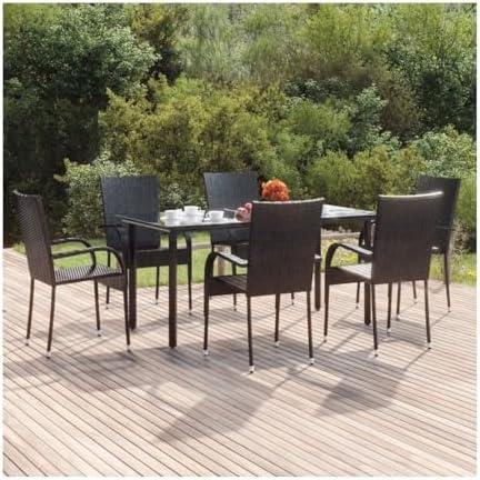7 Piece Patio Dining Set Black Poly Rattan 3156513, Excellent Service