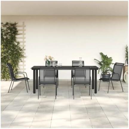 7 Piece Patio Dining Set Black Steel and Textilene 3200695, Made with fine Craftsmanship