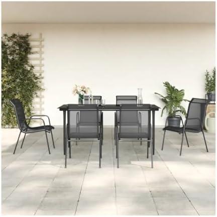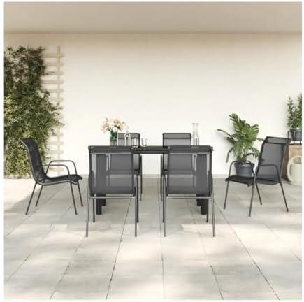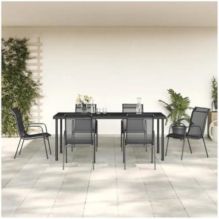 7 Piece Patio Dining Set Black Steel and Textilene 3200680, Easy to Install and Maintain