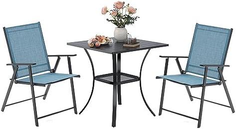 Pros of this set include easy portability due to the foldable chairs, no assembly required, and a classy aesthetic that complements a variety of outdoor settings. However, potential cons could be the foot pads that may require occasional adjustment to maintain stability, and while the lightweight material is advantageous for moving, it may not withstand extreme weather conditions over time. this set combines comfort and practicality, inviting you to enjoy leisurely meals outdoors.