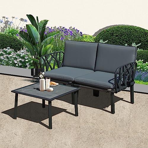However, it’s essential to note a few considerations. While the set is designed for comfort and style, the plastic back and armrests may not appeal to everyone who prefers the feel of all-metal furniture. Additionally, the cushion thickness may be a double-edged sword, as they can retain heat on warm days. Be mindful of how the intricate design might require more intensive cleaning to maintain its aesthetic appeal. this patio set offers a blend of functionality and elegance, making it a great addition to your outdoor space.