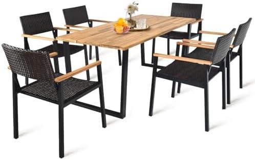 Elegant Outdoor Dining Set with Rattan Chairs and Acacia Wood
