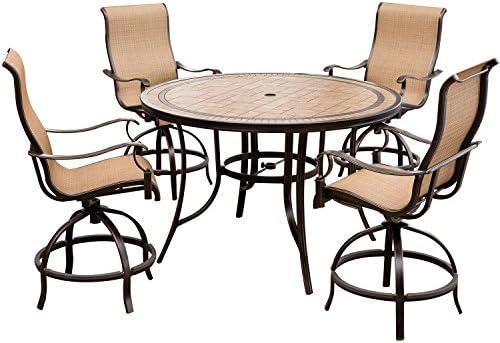 Hanover Monaco 5-Piece High-Dining Set with 56 in. Tile-top Table Outdoor Furniture, 5PC BAR, Tan