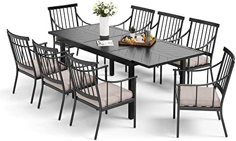 Stylish 9PC Outdoor Dining Set with Expandable Table and 8 Metal Chairs