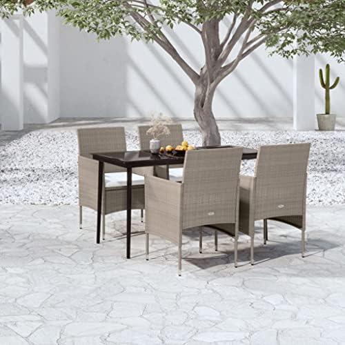 SKM 5 Piece Patio Dining Set with Cushions Beige and Black-93191026