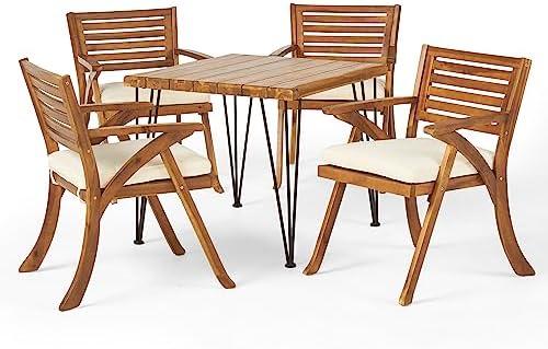 Natural Acacia Wood 5-Piece Outdoor Dining Set: Stylish & Functional