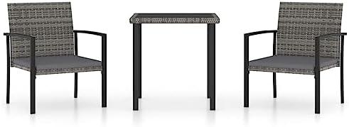 Constructed from powder-coated steel and poly rattan, this outdoor dining set combines robustness with an elegant design. Its manageable weight of 49. allows for easy relocation, making it a practical choice for patios, gardens, or backyards. The contemporary gray and black color scheme, complemented by 2-inch thick, removable cushions, ensures comfort while enhancing the aesthetic of various outdoor styles. This set is designed to withstand different weather conditions, though it is recommended to protect it during extreme weather such as heavy rain or snow.