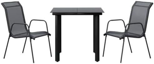 Transform your outdoor area into a cozy dining spot with this elegant garden dining ensemble. Constructed from powder-coated steel, the armchairs and table provide a sturdy and stable frame that can withstand various weather conditions. The textilene fabric used in the chairs is not only weather-resistant, but it’s also easy to clean, making it an ideal choice for outdoor use. The tempered glass tabletop adds sophistication and functionality, perfect for holding snacks, drinks, or decorative items while you enjoy leisurely afternoons outdoors. Ergonomically designed with a curved backrest and armrests, the chairs promise a relaxing seating experience that accommodates longer gatherings.