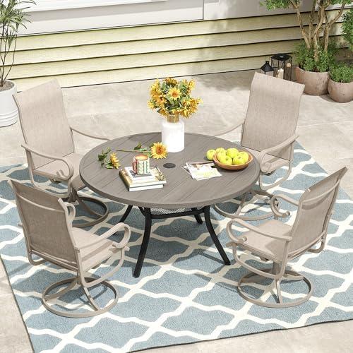 5-Piece Outdoor Dining Set with Swivel Chairs & Round Table