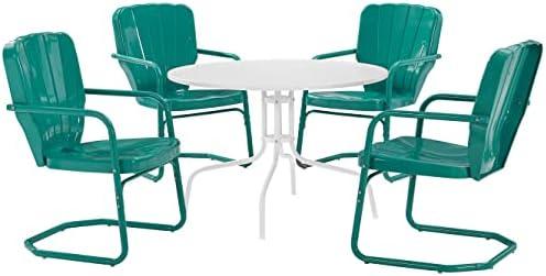 This delightful outdoor dining set features a vibrant turquoise gloss finish, effortlessly blending nostalgic style with modern durability. Built with sturdy steel construction, it includes four vintage-styled chairs that offer a touch of whimsy to any patio or deck. The clamshell chair backs, adorned with decorative grooves, not only enhance the retro aesthetic but also provide comfort and support. The cantilever bases allow for a slight flex, turning each meal into a relaxed affair. The weather-resistant powder-coated finish ensures that the set retains its beauty year after year, no matter the season.