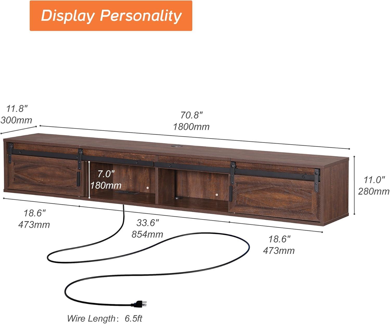 After spending considerable time with this floating TV stand, we appreciate its blend of style and practicality in everyday settings. The sturdy manufactured wood and metal accents provide reassuring durability, easily supporting TVs up to 80 lbs without any wobble or risk of tipping. Its wall-mounted design helps save floor space, making it ideal for both compact and spacious living rooms. The sliding barn door not only adds a charming rustic vibe but also cleverly conceals your media accessories, keeping the area tidy and visually appealing. Plus, the built-in charging station with four outlets is a game-changer, simplifying power management for all devices and reducing cable clutter.