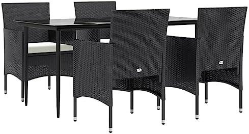 This outdoor dining arrangement is an excellent option for enjoying meals or simply unwinding in your garden or patio. The robust design features PE rattan, which not only resembles the elegance of natural rattan but is also renowned for its weather-resistant and low-maintenance characteristics. The table, crafted from acacia wood, offers a stable surface that is easy to clean with just a damp cloth. Ergonomically designed chairs come with an adjustable backrest, allowing you to customize your seating position for optimal comfort. Additionally, the thickly padded, luxuriously soft cushions ensure an enjoyable seating experience, whether you’re dining or relaxing.