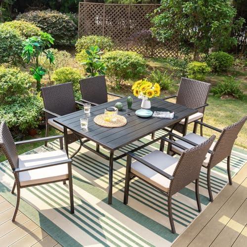 Stylish Outdoor Dining Set with 60″ Rectangular Table and 6 Stackable Chairs