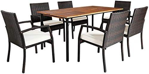While the set has many advantages, it’s essential to consider some potential drawbacks. The outdoor furniture requires assembly, which might be a hassle for some users. Additionally, while the cushions are thickly padded for comfort, they may need to be covered or stored away during extreme weather conditions to extend their longevity. Careful maintenance combined with a waterproof cover can significantly increase the lifespan of the set. Explore the full potential of your outdoor space with this stylish and practical dining solution.