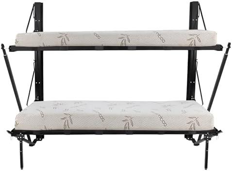 This innovative bunk bed system is designed for easy assembly and efficient space utilization, perfect for compact living environments like RVs. The strong steel frame ensures stability and can accommodate up to 250 lbs per bunk, making it suitable for various sleepers. Additionally, the cloth weave mattress holder effectively supports the mattress, preventing sagging and providing a comfortable sleeping surface. The versatility of this system allows it to be conveniently folded up when not in use, enhancing your storage options.