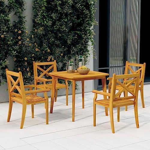 5 Piece Solid Wood Acacia Dining Furniture Set for Outdoors