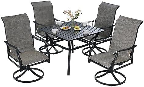 However, there are some drawbacks to consider. Although the set is shipped in multiple packages for easier assembly, some users might find the setup process a bit cumbersome if they are not experienced with assembling furniture. Additionally, while the chairs support up to 330 lbs, their design may not suit everyone’s aesthetic preferences. this dining set offers a combination of style, comfort, and practicality, making it a worthwhile investment for your outdoor space.