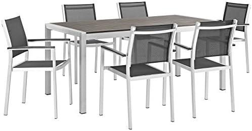 Modway Shore 7-Piece Aluminum Outdoor Patio Dining Table Set in Silver Black