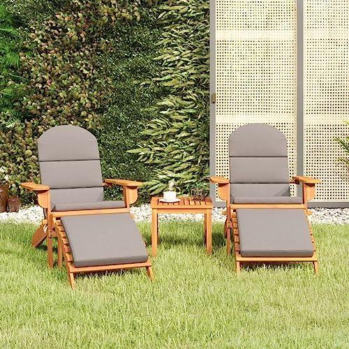 Experience leisurely outdoor moments with this beautifully crafted lounge set made from solid acacia wood, known for its durability and attractive appearance. The ergonomic design boasts high, slanted backrests and generously wide armrests to ensure comfort during relaxation. Each chair is complemented with plush cushions that enhance the sitting experience, while the coffee table offers a practical space for drinks and snacks. Plus, the foldable design of the chairs makes for convenient storage when not in use.