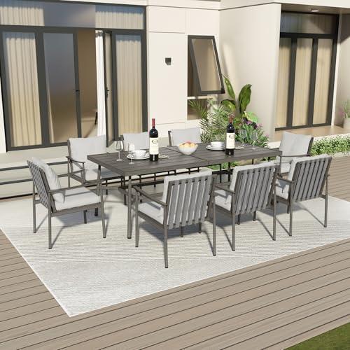This dining set accommodates up to eight people, making it perfect for various occasions, from cozy family meals to elegant outdoor gatherings. However, while the rattan design adds a modern and stylish touch, it’s important to note that regular maintenance may be required to keep it looking its best. Additionally, though the cushioned seats offer comfort, they might not be as plush as traditional furniture, which could affect longer sitting sessions. it’s an attractive choice for enhancing both indoor and outdoor dining areas.