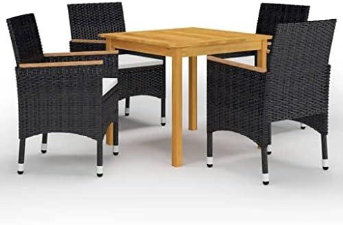 This stylish garden dining set features a sophisticated black and cream white color scheme, making it an attractive addition to any outdoor space. Crafted from solid acacia wood, known for its dense and sturdy qualities, this outdoor furniture ensures durability and longevity. The accompanying chairs are wrapped in weather-resistant PE rattan and feature a robust steel frame, making them suitable for all outdoor conditions. With their curved backrests and armrests, the chairs provide excellent support and comfort, while the included seat cushions add an extra layer of coziness for prolonged sitting.