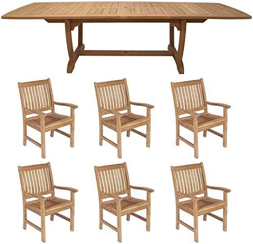 Amazonia Teak Extendable Oval Boynton Patio Dining Set, 7 Piece, Brown