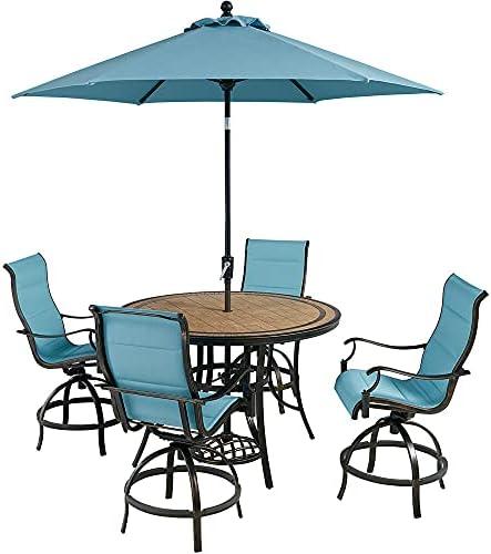 Elegant Outdoor High Dining Set with Umbrella and Chairs
