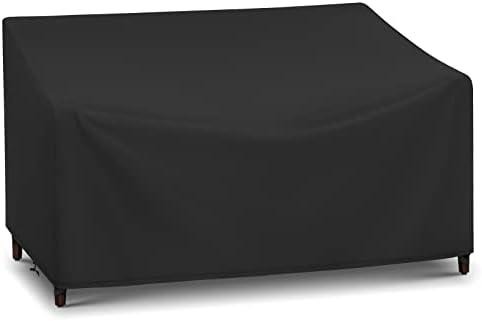 Designed to protect your outdoor furniture, this cover offers all-weather security for your patio couch with a sleek black finish. Crafted from UV resistant 420D polyester, it features a waterproof PU backing that provides robust defense against rain, snow, dust, and dirt. The breathable three-layer material ensures moisture escapes, preventing mold and mildew buildup. With dimensions of 54 inches wide, 37 inches deep, and 35 inches high, it fits most 2-seater loveseats snugly, ensuring a custom fit with the adjustable drawstring and four corner straps to keep it secure on windy days.